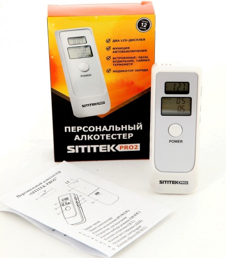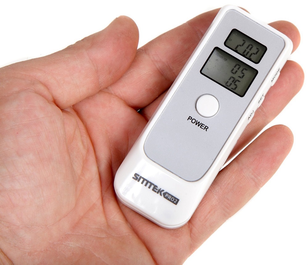 Портативный алкотестер Sititek PRO2 оснащен высокоточным полупроводниковым сенсором и сразу 2-мя ЖК-дисплеями. Данный алкометр быстро и точно определит содержание алкоголя в вашей крови. Для продувания применяется бесконтактный метод (без помощи мундштука). Выполняет функции термометра, таймера, будильника и часов.