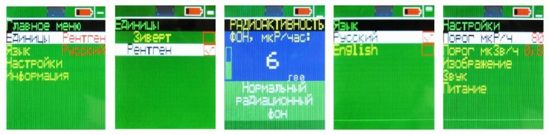 • в виде текста: на дисплее отображается информация о текущем уровне радиоактивности, причем в сообщении будет указано, нормальный ли уровень радиации или же он превышен.