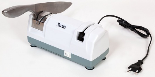 На корпусе расположена кнопка включения/выключения. Конструкция ножеточки продумана таким образом, что пользоваться устройством сможет абсолютно каждый, даже новичок. При этом станок для заточки ножей легко разбирается и чистится.