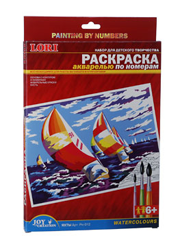 Набор для творчества поможет Вам сделать первые шаги к самостоятельному рисунку. Особенностью набора "Яхты" является то, что на бумагу уже нанесен контур рисунка. Вам нужно лишь оживить его с помощью акварели и на нем появится морской пейзаж со стремительными яхтами! Для удобства раскраски на внутренней стороне коробки напечатан дополнительный контур с номерами. Аккуратно разрежьте коробку и сверяйтесь с ними в процессе создания картины.