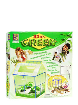 В набор входит: элементы для сборки теплицы, 2 формы, 8 пластинок спрессованной земли, семена, 8 наклеек, вращающаяся рулетка, пипетка, линейка, таблица, подробная инструкция на русском языке. Материал: пластик, картон, семена.