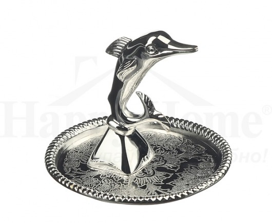 Дельфин – это символ надежды, гордости и достоинства. Необычная подставка для украшений "Дельфин" украсит ваш туалетный столик или прикроватную тумбочку. Этот милый аксессуар  предназначен для того, чтобы ваши кольца и сережки всегда были на своем месте. Причем украшения можно размещать не только на подносе, но и на носу дельфина.