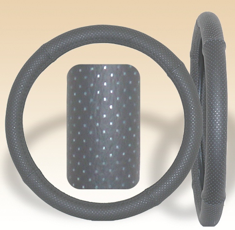 Материал: кожа, перфорированная. За счет перфорации ладони не потеют и не липнут к чехлу. Размер: M: 37-39 см. Подходит на все типы рулевого колеса.