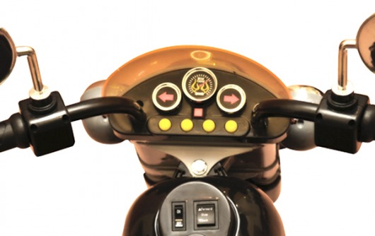 • Благодаря электродвигателю мощностью 12 Вт, детский электрический мотоцикл способен развить скорость до 3 км/ч – этого более чем достаточно, чтобы ребенок был в восторге от катания.