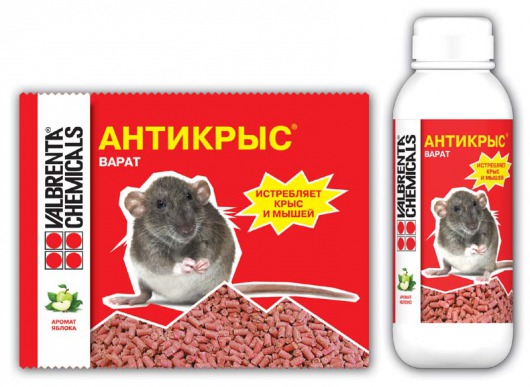 Гранулированная приманка для мышей и крыс VALBRENTA CHEMICALS ВАРАТ "Антикрыс", 800 г