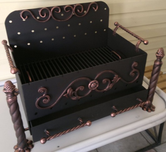 Кованый мангал для дачи Каминный — простая и удобная модель, которая прекрасно впишется в дизайн любого загородного участка. Несмотря на изящность и компактность, его конструкция отличается особой прочностью. Ящик мангала с выдвигающимся зольником и съемными колосниками выполнен из жаропрочной стали толщиной 4 мм, которая выдерживает высокие температурные нагрузки в течение долгого времени и не деформируется. Жаровня покрыта огнеупорной краской, и вам не потребуется обжигать ее огнем перед использованием. Дачный кованый мангал Каминный можно ставить в камин, а можно использовать самостоятельно (для этого он оснащен декоративной подставкой).