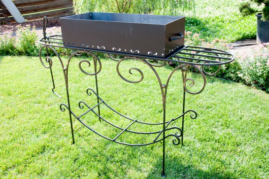 И это не единственные преимущества дачного кованого мангала М29. Несмотря на утонченность и компактность, его конструкция отличается особой прочностью. Стойка усилена элементами ручной ковки, а ящик мангала изготовлен из жаростойкой стали толщиной 4 мм, которая выдерживает высокие температурные нагрузки в течение долгого времени и не деформируется. Сбоку от жаровни располагаются 2 металлических столика для посуды.
