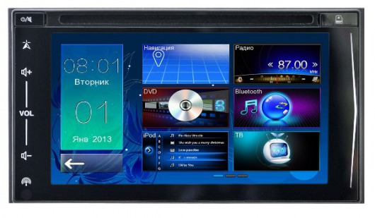 Данная магнитола считывает большинство самых востребованных форматов файлов: MP3, WMA, MPEG1/2, MPEG4, JPEG, GIF, BMP. Это даст возможность интересно провести время за просмотром кино, фотографий, видеоклипов и мн.др. Отличное качество изображения обеспечит встроенный сенсорный 6,5-дюймовый дисплей с разрешением 800х480 пикселей. Также экран является элементом управления автомагнитолой, но для максимально комфортного и безопасного использования устройства, рекомендуется произвести штатное подключение к кнопкам на рулевом колесе.