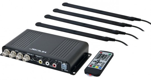 Меню TV-тюнера русифицировано, что упрощает работу с оборудованием. Тюнер имеет аналоговый и цифровой видеовыходы, позволяет транслировать каналы DVB-T2 в формате MPEG-4. Устройство обеспечивает отличную передачу изображения и аудио. Он способен стабильно принимать сигнал, когда автомобиль движется на высокой скорости. Устройство отлично подходит для трансляции современных цифровых каналов.