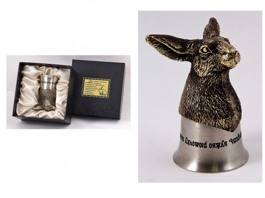 • Основание стопки в виде головы зайца изготовлено из латуни художественным литьем.