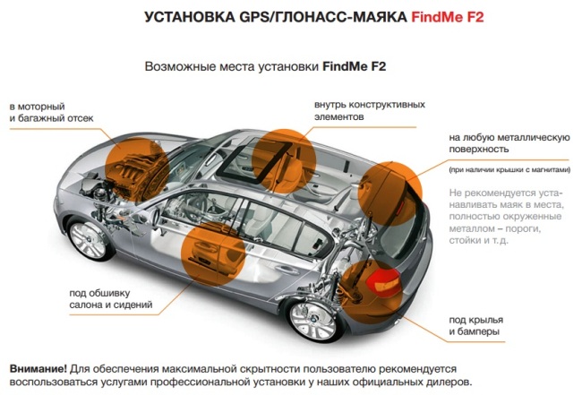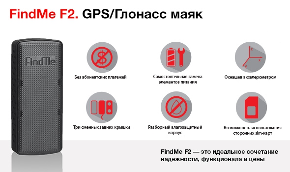 Поисковый GPS/ГЛОНАСС маяк FindMe F2 — это не просто усовершенствованная модель маяка FindMe F1. Это принципиально новое устройство, которое взяло все лучшее из линейки маяков FindMe, но при этом усилено рядом функций и расширенными возможностями мониторинга: для максимально точного поиска объекта он использует сигнал GSM-станций и одновременно 2 спутниковые системы (GPS и ГЛОНАСС). Данный маяк создавался специально для определения местонахождения автомобиля, мотоцикла или любого другого мобильного объекта на случай, если он будет похищен или утерян. Компактное устройство скрытно устанавливается на объект наблюдения и передает пользователю свои точные спутниковые координаты.