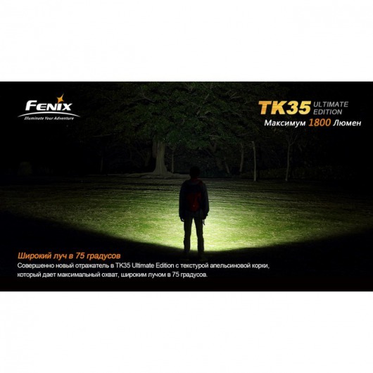Материалом корпуса служит анодированный алюминий: прочный и стойкий к коррозии материал. К тому же, оболочка Fenix TK35 не пропускает внутрь устройства ни воду, ни пыль. Эти качества предусмотрены условиями стандарта ANSI IPX-8, которому соответствует фонарь Fenix TK35 Cree MT-G2.