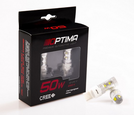 Светодиодная лампа Optima Premium W21W - 7440 (W3X16d) Cree 50W 12-24V 5100К – это лампа в задний ход, увеличенная светоотдача достигается благодаря использованию современных технологий CREE. Лампы Optima работают намного эффективнее, характеризуются более мощной светоотдачей.