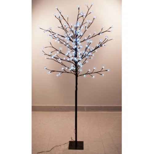 Светодиодное дерево Сакура высотой 150 см — яркое дополнение к вашему новогоднему интерьеру. Необычное исполнение делает фигуру очень эффектной. Каждый выделит её среди всех праздничных украшений: холодный белый свет красиво играет на фоне темно-коричневого ствола.