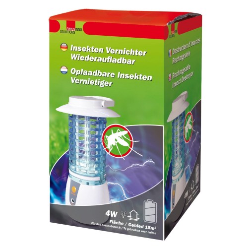 Ультрафиолетовый свет привлекает насекомых на металлическую сетку, которая в свою очередь находится под напряжением. Под действием электрического тока, насекомые погибают. Мёртвые насекомые падают на съемный поддон, который легко достать и очистить. Ультрафиолетовый свет и металлическая сетка является безопасными для людей и животных. Подойдет для использования дома, а так же на улице.