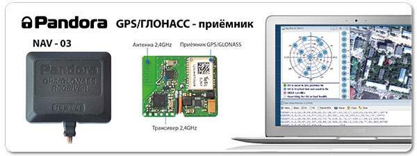 Работа GPS/ГЛОНАСС-приемника Pandora NAV-03 с Pandora 5910 также осуществляется по универсальному беспроводному интерфейсу на 2,4ГГц и не требует прямого подключения к базовому блоку системы. Это позволит расположить приемник в местах наилучшего прохождения спутникового сигнала, без необходимости прокладывать провода от приемника до системы. Также "по воздуху" осуществляется и интеллектуальное управление режимами работы и энергосбережения GPS/ГЛОНАСС-приемника, что позволило с одной стороны сократить энергопотребление, с другой - забыть о таких параметрах как время "холодного" и "горячего" старта.