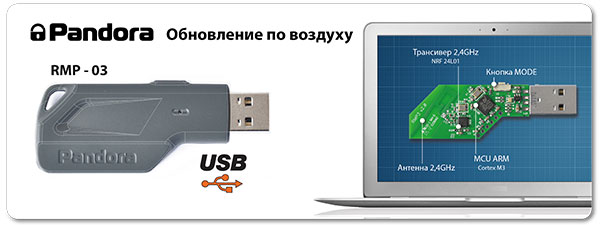 Изменять параметры работы Pandora 5910 с компьютера или ноутбука, теперь можно не только используя кабель miniUSB, но и "по воздуху", что особенно актуально, когда необходимо скорректировать настройки системы, уже установленной на автомобиль. Для связи компьютера с базовым блоком системы по беспроводному интерфейсу служит программатор Pandora RMP-3, с помощью которого можно не только настроить параметры системы, но и обновлять П.О.