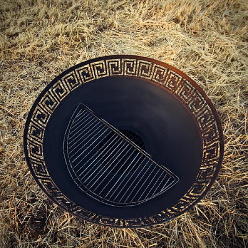 Изящество и аскетизм греческого орнамента выглядит очень необычно. Огонь, плескающийся в этой емкости, приковывает взгляд и создает отличную атмосферу для продолжительных бесед у костра.