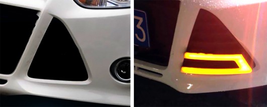 Дневные ходовые огни с повторителем поворота на Ford Focus 3 2011-2014 г.в. (с функцией отключения) имеют светодиодный яркий свет. Ходовые огни устанавливаются в штатные места автомобиля, поэтому не нужно никакого дополнительного сверления или подрезания во время монтажа