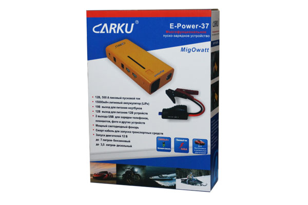 Пуско-зарядное устройство CARKU E-Power-37 – компактный гаджет, который поможет вам запустить двигатель автомобиля или мотоцикла, а также обеспечит зарядку портативным устройствам вроде телефона или планшета. В случае необходимости само ПЗУ можно зарядить от прикуривателя прямо в автомобиле.
