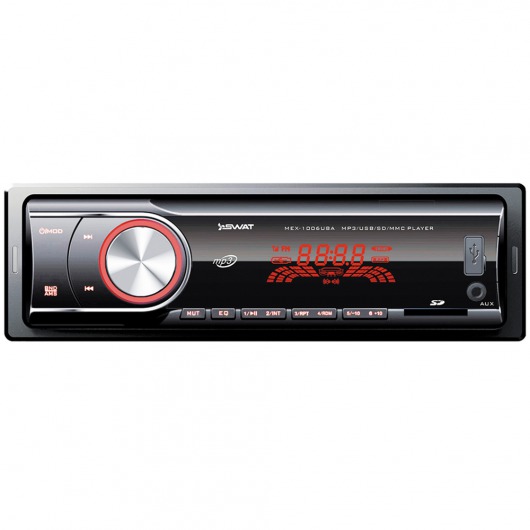 Автомобильная магнитола 1din Swat MEX-1006UBA – недорогое, но функциональное утройство. У MEX-1006UBA есть широкий набор мультимедийных технологий, которые позволяют выжать из устройства по максимуму. Ресивер способен выдавать звук на 4 колонки по 50 ватт. Есть возможность сохранения до 18 радиостанций на цифровом радио-тюнере. Кроме того, реализована возможность прослушивания аудиозаписей через карту памяти.