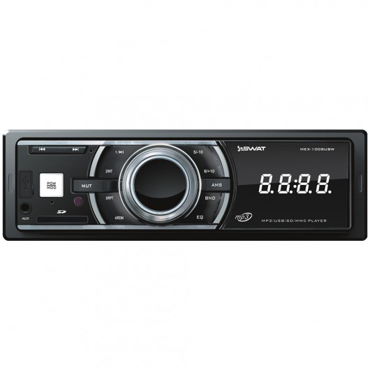 Автомобильная магнитола 1din Swat MEX-1008UBW – недорогое, но функциональное утройство. У MEX-1008UBW есть широкий набор мультимедийных технологий, которые позволяют выжать из устройства по максимуму. Ресивер способен выдавать звук на 4 колонки по 50 ватт. Есть возможность сохранения до 18 радиостанций на цифровом радио-тюнере. Кроме того, реализована возможность прослушивания аудиозаписей через карту памяти.