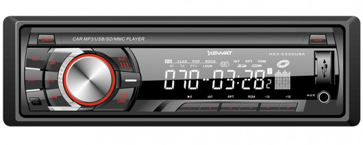 Автомобильная магнитола 1din Swat MEX-2330UBA – недорогое, но функциональное утройство. У MEX-2330UBA есть широкий набор мультимедийных возможностей, которые позволяют выжать из устройства по максимуму. Ресивер способен выдавать звук на 4 колонки по 50 ватт. Есть возможность сохранения до 18 радиостанций на цифровом радио-тюнере. Кроме того, реализована возможность прослушивания аудиозаписей через карту памяти.