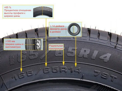 Определить размер шины очень просто: он прописан на боковой стороне шины. (Подробнее)
