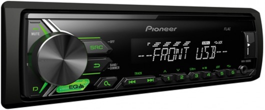 Автомобильная магнитола 1din Pioneer MVH-190UBG – очень функциональное утройство. У автомагнитолы есть широкий набор мультимедийных технологий, которые позволяют выжать из устройства по максимуму. Ресивер способен выдавать звук на 4 колонки по 50 ватт. Есть возможность сохранения до 18 радиостанций на цифровом радио-тюнере. Кроме того, реализована возможность прослушивания аудиозаписей через карту памяти или AUX.