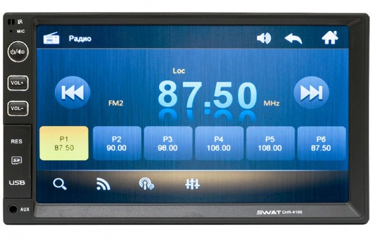 Автомобильная штатная магнитола 2din SWAT CHR-4100 с Bluetooth и сенсорным дисплеем 7 дюймов – очень функциональное утройство. У автомагнитолы есть широкий набор мультимедийных технологий, которые позволяют выжать из устройства по максимуму. Ресивер способен выдавать звук на 4 колонки по 50 ватт. Есть возможность сохранения до 18 радиостанций на цифровом радио-тюнере. Кроме того, реализована возможность прослушивания аудиозаписей через карту памяти или блютуз.