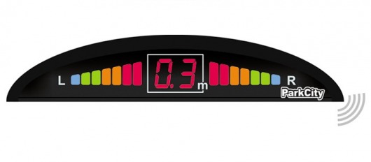 Расстояние до ближайшего препятствия отображается на светодиодном дисплее. Устанавливается индикатор на зеркало заднего вида. 2 цифровые шкалы дают Вам сведения о препятствиях по обе стороны от машины. Система обладает также функцией автотестирования.
