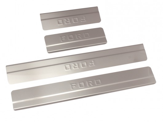 Накладки на металлические пороги дверей Форд Фокус 3 с логотипом авто не только обеспечивают защиту верхней и боковой поверхности внутреннего порога, но и отлично вписываются в интерьер автомобиля, подчеркивая его стиль и индивидуальность. C монтажом проблем не возникнет: установка накладок на внутренний порог для Ford Focus 3 производится на штатные места с помощью скотча 3M.