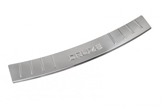 Декоративная накладка на задний бампер Chevrolet Cruze — это аксессуар автомобильного тюнинга, который защищает верхнюю часть заднего бампера от механических повреждений при загрузке или выгрузке вещей из багажника. Декоративные накладки на задний бампер предназначены для автомобилей Шевроле Круз хетчбэк 2011-2013 г.в.