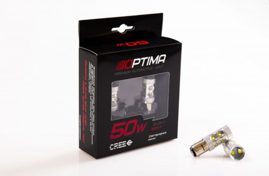 Светодиодная лампа Optima Premium P21W Cree 50W 12-24V 5100К – это габаритная лампа с увеличенной светоотдачей. Такие показатели достигаются благодаря использованию современных технологий CREE. Лампы Optima работают намного эффективнее, характеризуются более мощным световым потоком.