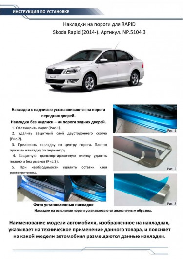 Данные накладки на внутренние пороги «Риваль» разработаны специально для автомобилей Skoda Rapid от 2014 г.в. и полностью повторяют их геометрию. Кроме того, накладки порогов двери Rival очень легко и быстро устанавливаются. И при этом надежно крепятся за счет плотного прилегания морозостойкого скотча.