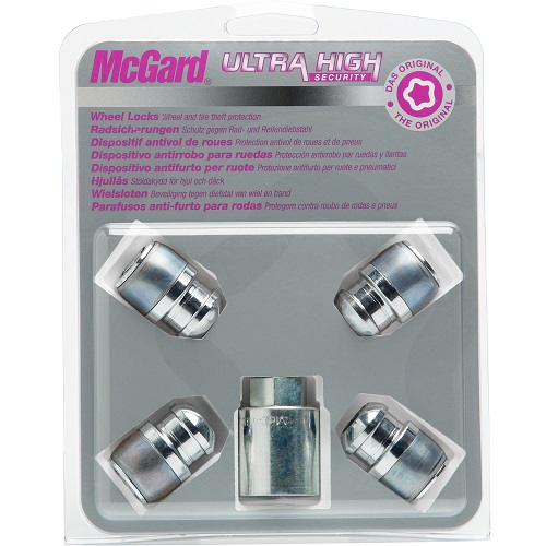 Секретные колесные гайки McGard Premium Wheel Locks 25000 SL со сферическим основанием и шагом резьбы M12х1,5 гарантированно защитят колеса и диски вашего авто от кражи. Для этого вам достаточно будет установить по 1-й гайке-секретке на каждое колесо. Для дополнительной защиты гайки оснащены специальным вращающимся кольцом, которое препятствует откручиванию секретки с помощью плоскогубцев.