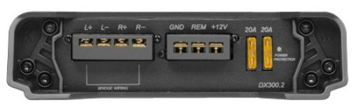 Автомобильный усилитель KICKER DX300.2  отличается утонченными пропорциями, поскольку ширина корпуса всего лишь 54 мм. Сплошной черный окрас корпуса придает ему стильность и даже изящество. Специальные зажимы имеют одинаковую ширину, клемы для которых входят в комплект, а значит установить такой усилитель будет просто. Еще одним отличительным свойством этого прибора является то, что он может включаться без использования сигнала Rem от головного устройства, что является оцень полезным свойтвом для апгрейда штатной акустики.