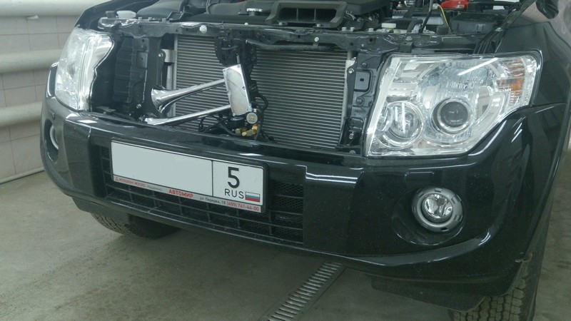 Фото установленного звукового сигнала Hadley KIT 961 на Mitsubishi Pajero 4: