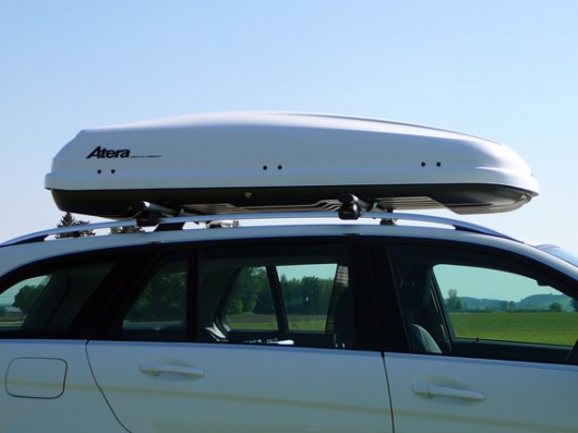 Обратите внимание! Автобокс на крышу Atera устанавливается не на саму крышу автомобиля, а на багажник. Сначала необходимо закрепить на крыше поперечины багажника, а потом уже на них ставится бокс.