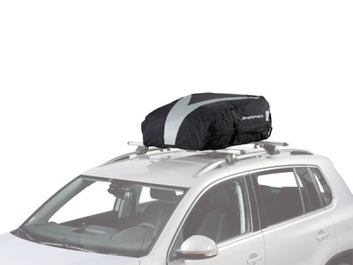 Обратите внимание! Мягкий автобокс на крышу устанавливается не на саму крышу автомобиля, а на багажник. Сначала необходимо закрепить на крыше поперечины багажника (см. фото 1), а потом уже на них ставится бокс (как на фото 2). Если у вас нет поперечников, вы можете подобрать их для своей марки авто здесь.