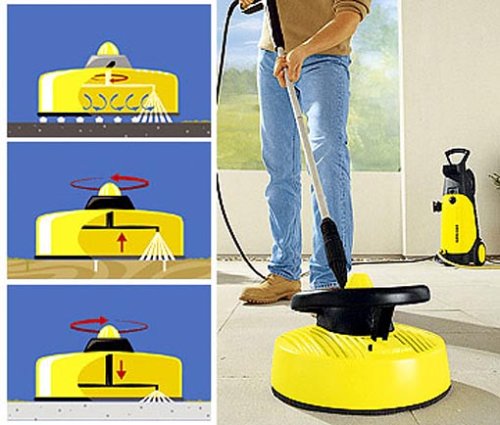 Karcher T-Racer T 300 просто создан для эффективной чистки плоских поверхностей. Вы без труда проведете уборку терасс, стен из камня или древесины. У насадки есть дополнительная ручка, которая облегчает очистку вертикальных площадей. К примеру, гаражных ворот.