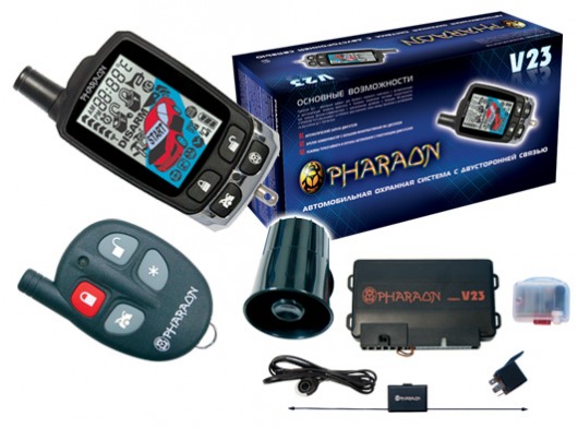 Автосигнализация Pharaon V23 - это охранная система, которая снабжена функцией автоматического запуска двигателя и двухсторонней связью. Для своей невысокой стоимости, эта сигнализация имеет внушительную дальность связи даже в условиях города - до 1 км. Такая дальность уверенного приема сигнала - результат применения частотной модуляции в радио-канале.