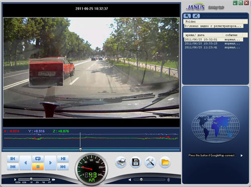 Видеорегистратор Janus HD снимает видео отменного качества! Четкими получаются даже те ролики, которые получены ночью. Используя "зумм", Вы можете увеличить какие-нибудь детали, чтобы получше их рассмотреть. Например, номера других автомобилей или дорожные знаки.