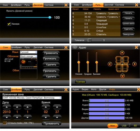 Прибор читает множество видео-, аудиоформатов и даже текстовые файлы: MP3, WMA, WAVE, MPEG1/2, MPEG4, WMV, JPEG, GIF, PNG, BMP, MS-Word, Excel, PowerPoint, Adobe PDF, *.txt. Для радио- и телелюбителей есть FM и аналоговый тюнеры. Кстати, музыку можно прослушивать, не прекращая при этом работу навигации.