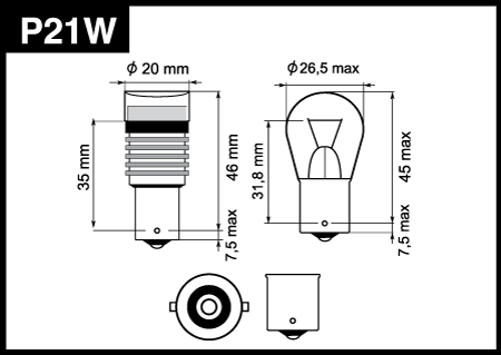 Светодиодная лампа MTF P21W оснащена специальной линзой 360°. Благодаря этому свет распространяется равномерно и полностью освещает площадь отражателя, расположенную у основания лампы