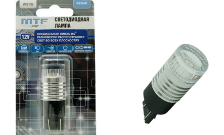Уникальная бесцокольная светодиодная лампа MTF W21W рекордно энергоэкономична. Цвет света - белый. Он очень яркий, однако при этом отлично воспринимается человеческим глазом. Линза 360° равномерно распространяет свет и полностью освещает площадь отражателя, которая расположена у основания лампы.