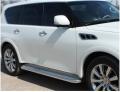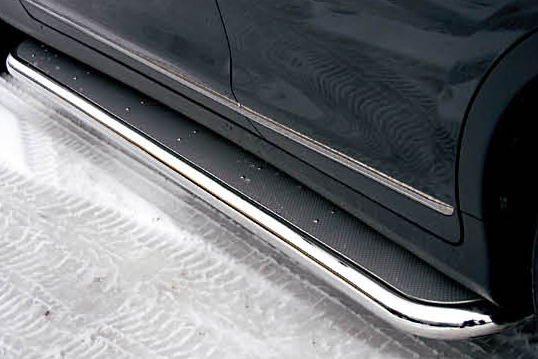 Боковые пороги на Infiniti FX 35 и FX 50 из нержавеющей стали диаметром 60 мм не боятся коррозии, сколов и царапин и выдерживают большие нагрузки. Боковые подножки-пороги с листом сделаны специально для автомобилей Infiniti FX 35, FX 50 от 2008 г.в., легко устанавливаются и стильно смотрятся. В комплекте вы получите 2 подножки.