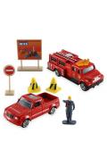 Игровой набор "МЧС", состоящий из 2 машин - пожарной и пикапа, фигурки спасателя и дорожных знаков, можно использовать как для соединения с другими элементами конструктора Мега Сити, так и для самостоятельной игры.