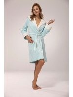 Мягкий и нежный бамбуковый халат средней длины с капюшоном. Нежные пастельные тона, контрастная отделка манжета рукавов, внутренней части капюшона.