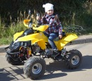 Бензиновый квадроцикл, способный развивать скорость до 40 км/ч и выше — лучший вариант для подростка 11-14 лет и старше. Но не забывайте, что это довольно серьезное средство передвижения, которое предполагает наличие у вашего ребенка особой ответственности и определенных навыков вождения. Кстати, большинство подростковых квадроциклов выдерживают нагрузку до 100 кг, а значит, и взрослый может без проблем кататься на таком квадроцикле для подростков.